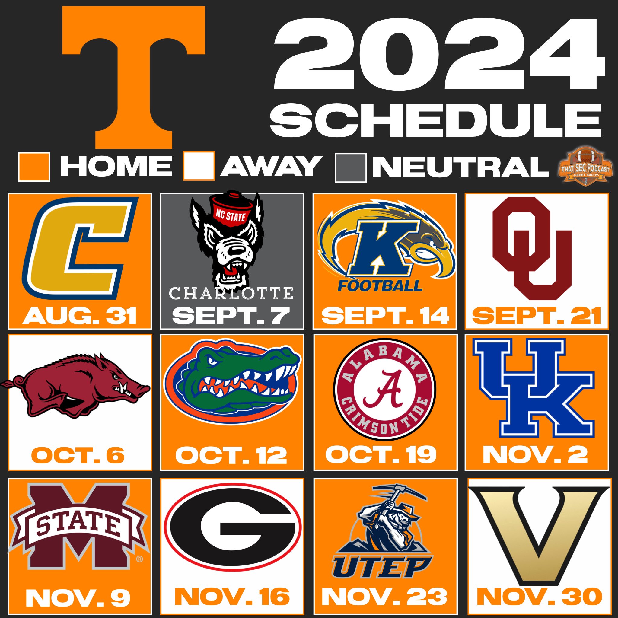 Source : utsports.comSEC Mike on X: “Tennessee Volunteers 2024 Schedule https://t.co